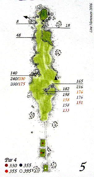 "Et lige drive vil være en god ide på dette hul, men den største udfordring ligger i køllevalget for 2. slaget - for der er længere til green end det ser ud til."